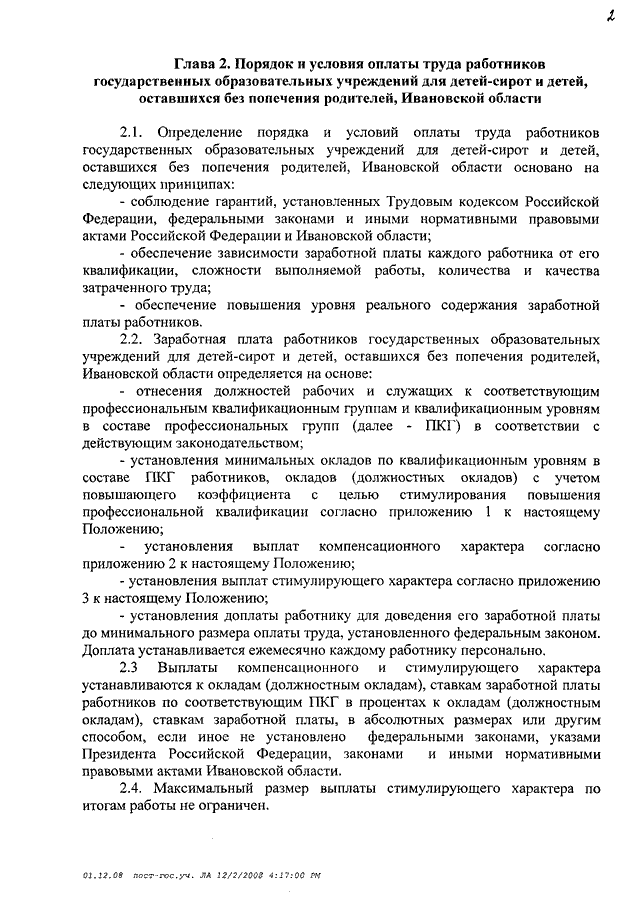 Постановление Правительства Ивановской области от 31.12.2008 N 366-п "О системе оплаты труда работников государственных учреждений системы социальной защиты населения Ивановской области" (вместе с "Типовым положением об оплате труда работников государственных учреждений социального обслуживания и социальной защиты населения Ивановской области", "Типовым положением об оплате труда работников государственных образовательных учреждений для детей-сирот и детей, оставшихся без попечения родителей, Ивановской области", "Перечнями должностей работников государственных учреждений системы социальной защиты населения Ивановской области, относимых к основному персоналу, для расчета средней заработной платы и определения размеров должностных окладов руководителей учреждений системы социальной защиты населения Ивановской области")