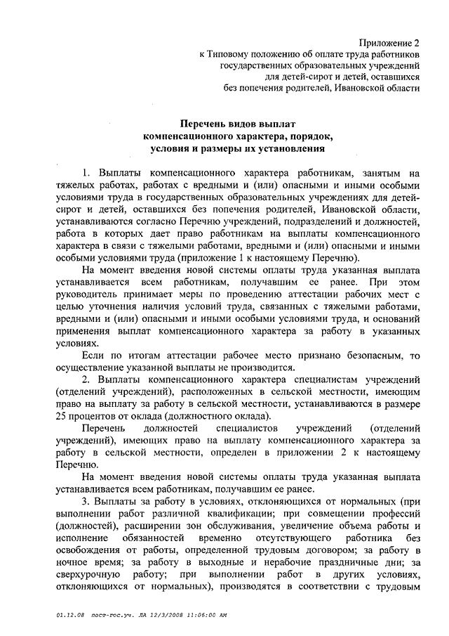 Постановление Правительства Ивановской области от 31.12.2008 N 366-п "О системе оплаты труда работников государственных учреждений системы социальной защиты населения Ивановской области" (вместе с "Типовым положением об оплате труда работников государственных учреждений социального обслуживания и социальной защиты населения Ивановской области", "Типовым положением об оплате труда работников государственных образовательных учреждений для детей-сирот и детей, оставшихся без попечения родителей, Ивановской области", "Перечнями должностей работников государственных учреждений системы социальной защиты населения Ивановской области, относимых к основному персоналу, для расчета средней заработной платы и определения размеров должностных окладов руководителей учреждений системы социальной защиты населения Ивановской области")