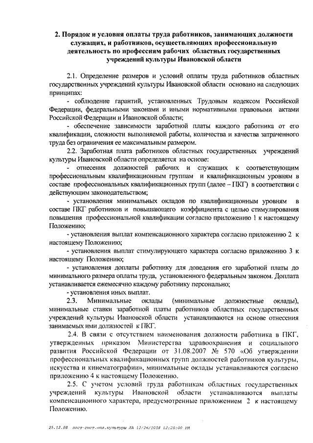 Постановление Правительства Ивановской области от 31.12.2008 N 367-п "О системе оплаты труда работников областных государственных учреждений, подведомственных Департаменту культуры и культурного наследия Ивановской области" (вместе с "Типовым положением об оплате труда работников областных государственных учреждений культуры Ивановской области", "Типовым положением об оплате труда работников областных государственных образовательных учреждений сферы культуры Ивановской области")