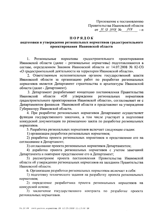 Постановление Правительства Ивановской области от 31.12.2008 N 359-п "Об утверждении Порядка подготовки и утверждения региональных нормативов градостроительного проектирования Ивановской области"