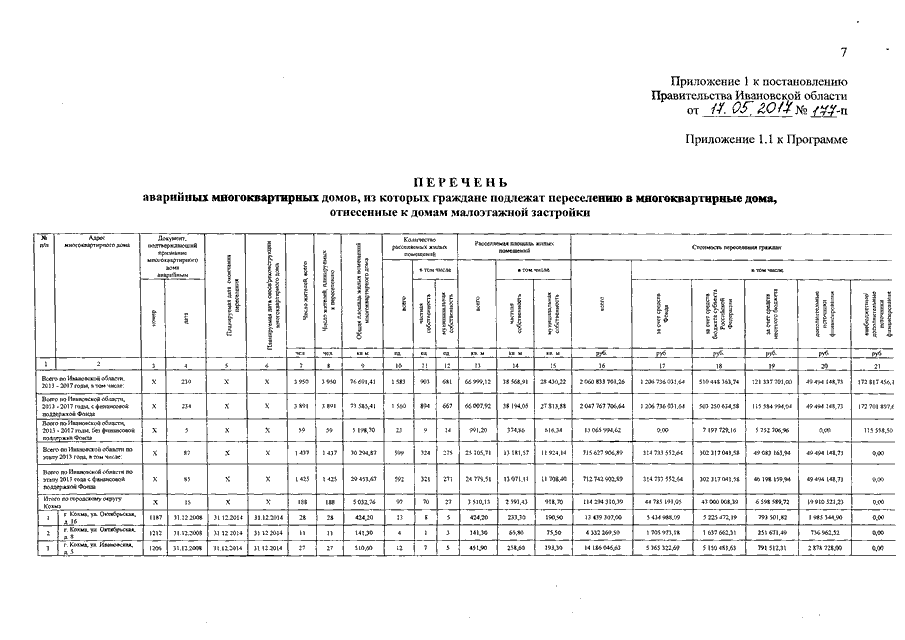 Постановление Правительства Ивановской области от 17.05.2017 N 177-п "О внесении изменений в постановление Правительства Ивановской области от 15.04.2013 N 134-п "Об утверждении региональной адресной программы "Переселение граждан из аварийного жилищного фонда на территории Ивановской области на 2013 - 2017 годы" (вместе с "Перечнем аварийных многоквартирных домов, из которых граждане подлежат переселению в многоквартирные дома, отнесенные к домам малоэтажной застройки", "Реестром аварийных многоквартирных домов по способам переселения, из которых граждане подлежат переселению в многоквартирные дома, отнесенные к домам малоэтажной застройки")