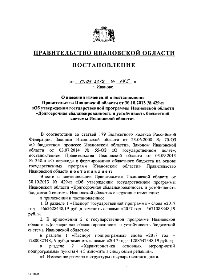 Постановление Правительства Ивановской области от 17.05.2017 N 175-п "О внесении изменений в постановление Правительства Ивановской области от 30.10.2013 N 429-п "Об утверждении государственной программы Ивановской области "Долгосрочная сбалансированность и устойчивость бюджетной системы Ивановской области"