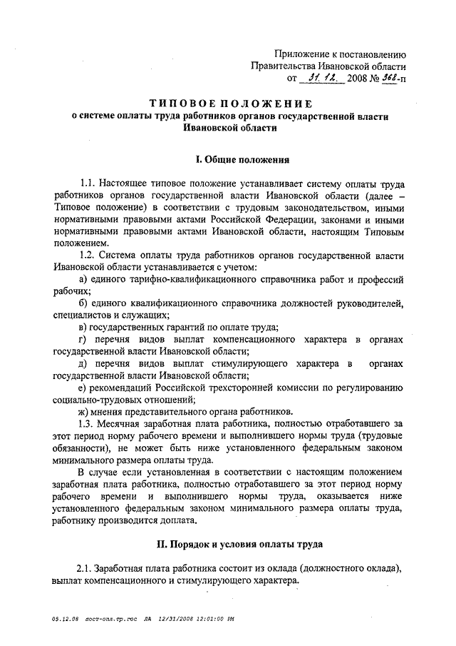 Постановление Правительства Ивановской области от 31.12.2008 N 368-п "О системе оплаты труда работников органов государственной власти Ивановской области" (вместе с "Типовым положением о системе оплаты труда работников органов государственной власти Ивановской области")