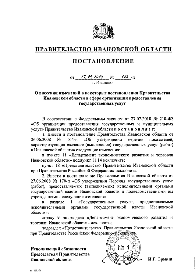 Постановление Правительства Ивановской области от 17.05.2017 N 185-п "О внесении изменений в некоторые постановления Правительства Ивановской области в сфере организации предоставления государственных услуг"