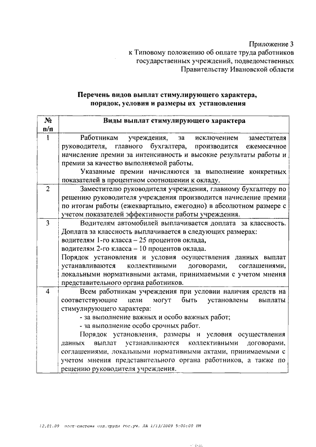 Постановление Правительства Ивановской области от 31.12.2008 N 372-п "О системе оплаты труда работников государственных учреждений, подведомственных Правительству Ивановской области" (вместе с "Типовым положением об оплате труда работников государственных учреждений, подведомственных Правительству Ивановской области", "Перечнями должностей работников государственных учреждений, подведомственных Правительству Ивановской области, относимых к основному персоналу, для расчета средней заработной платы и определения размеров должностных окладов руководителей учреждений, подведомственных Правительству Ивановской области")