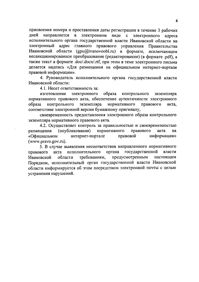 Распоряжение Правительства Ивановской области от 17.05.2017 N 75-рп "Об утверждении Порядка предоставления исполнительными органами государственной власти Ивановской области электронных образов контрольных экземпляров нормативных правовых актов для размещения (опубликования) на "Официальном интернет-портале правовой информации" (www.pravo.gov.ru)"