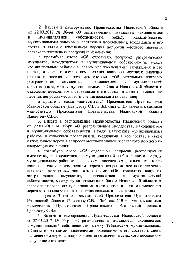 Распоряжение Правительства Ивановской области от 17.05.2017 N 76-рп "О внесении изменений в некоторые распоряжения Правительства Ивановской области в сфере разграничения имущества, находящегося в муниципальной собственности, между муниципальными образованиями Ивановской области"