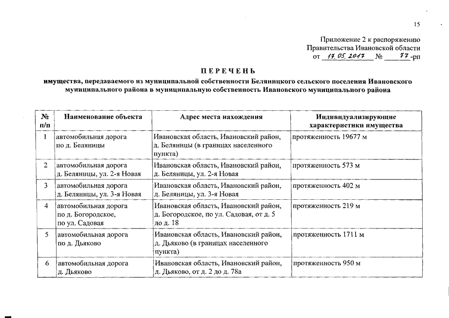 Распоряжение Правительства Ивановской области от 17.05.2017 N 77-рп "О разграничении имущества, находящегося в муниципальной собственности, между Ивановским муниципальным районом и сельскими поселениями, входящими в его состав, в связи с изменением перечня вопросов местного значения сельского поселения"