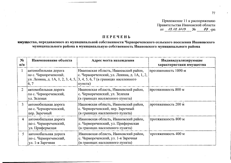 Распоряжение Правительства Ивановской области от 17.05.2017 N 77-рп "О разграничении имущества, находящегося в муниципальной собственности, между Ивановским муниципальным районом и сельскими поселениями, входящими в его состав, в связи с изменением перечня вопросов местного значения сельского поселения"