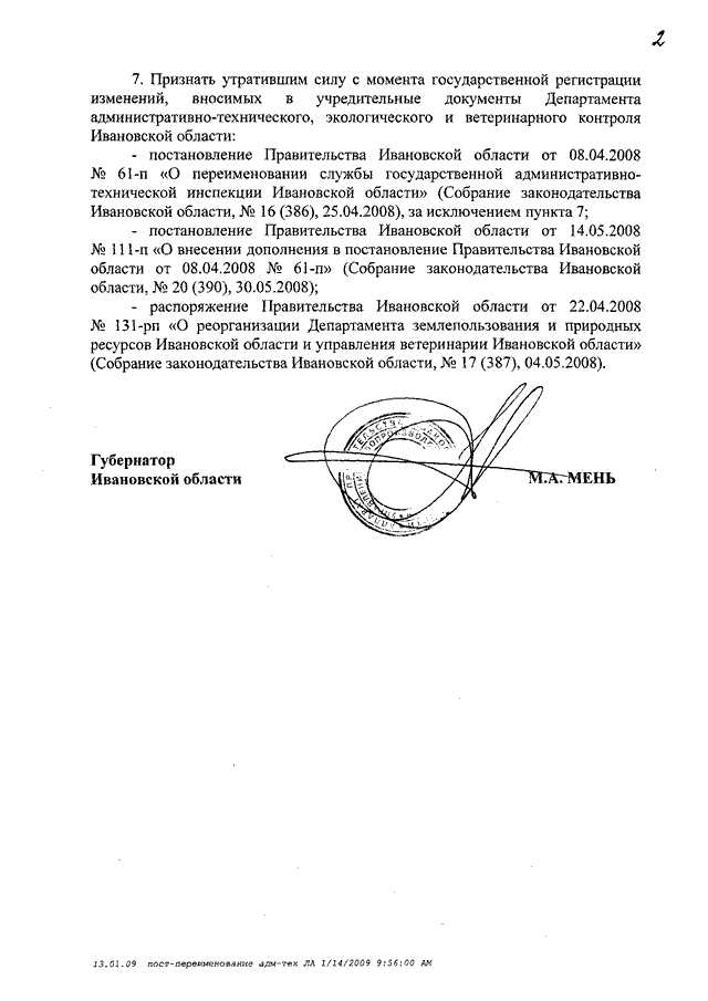 Постановление Правительства Ивановской области от 13.01.2009 N 1-п "О переименовании Департамента административно-технического, экологического и ветеринарного контроля Ивановской области" (вместе с "Положением о Департаменте государственного контроля Ивановской области")