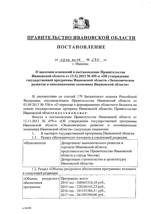 Постановление Правительства Ивановской области от 08.06.2017 N 230-п "О внесении изменений в постановление Правительства Ивановской области от 13.11.2013 N 459-п "Об утверждении государственной программы Ивановской области "Экономическое развитие и инновационная экономика Ивановской области" (вместе с "Порядком предоставления и распределения субсидий бюджетам муниципальных образований на реализацию мероприятий по строительству и (или) реконструкции объектов инфраструктуры, необходимых для реализации новых инвестиционных проектов в моногородах")