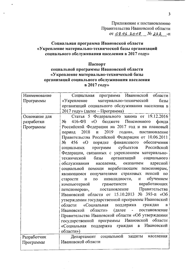 Постановление Правительства Ивановской области от 08.06.2017 N 222-п "О социальной программе Ивановской области "Укрепление материально-технической базы организаций социального обслуживания населения в 2017 году"
