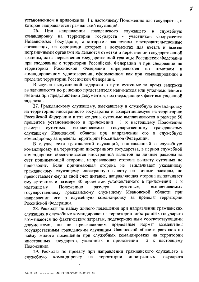 Постановление Правительства Ивановской области от 27.01.2009 N 11-п "Об утверждении Положения о порядке и условиях командирования государственных гражданских служащих Ивановской области и возмещения им расходов, связанных со служебными командировками на территории Российской Федерации и иностранных государств"