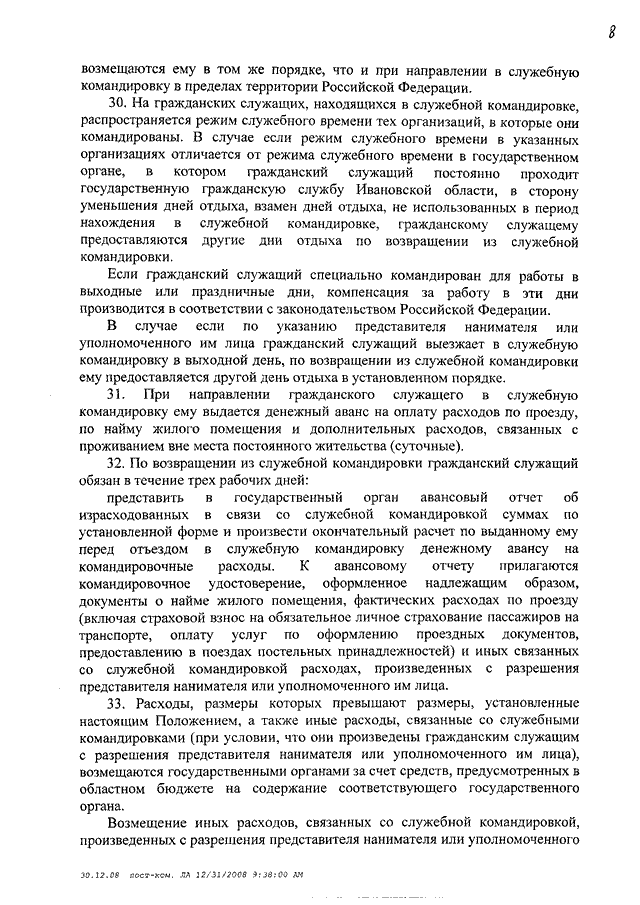 Постановление Правительства Ивановской области от 27.01.2009 N 11-п "Об утверждении Положения о порядке и условиях командирования государственных гражданских служащих Ивановской области и возмещения им расходов, связанных со служебными командировками на территории Российской Федерации и иностранных государств"