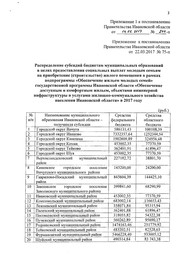 Постановление Правительства Ивановской области от 14.06.2017 N 244-п "О внесении изменений в некоторые постановления Правительства Ивановской области"