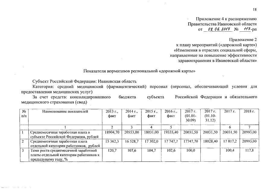 Распоряжение Правительства Ивановской области от 08.06.2017 N 117-рп "О внесении изменений в распоряжение Правительства Ивановской области от 04.03.2013 N 37-рп "Об утверждении плана мероприятий ("дорожной карты") "Изменения в отраслях социальной сферы, направленные на повышение эффективности здравоохранения в Ивановской области"