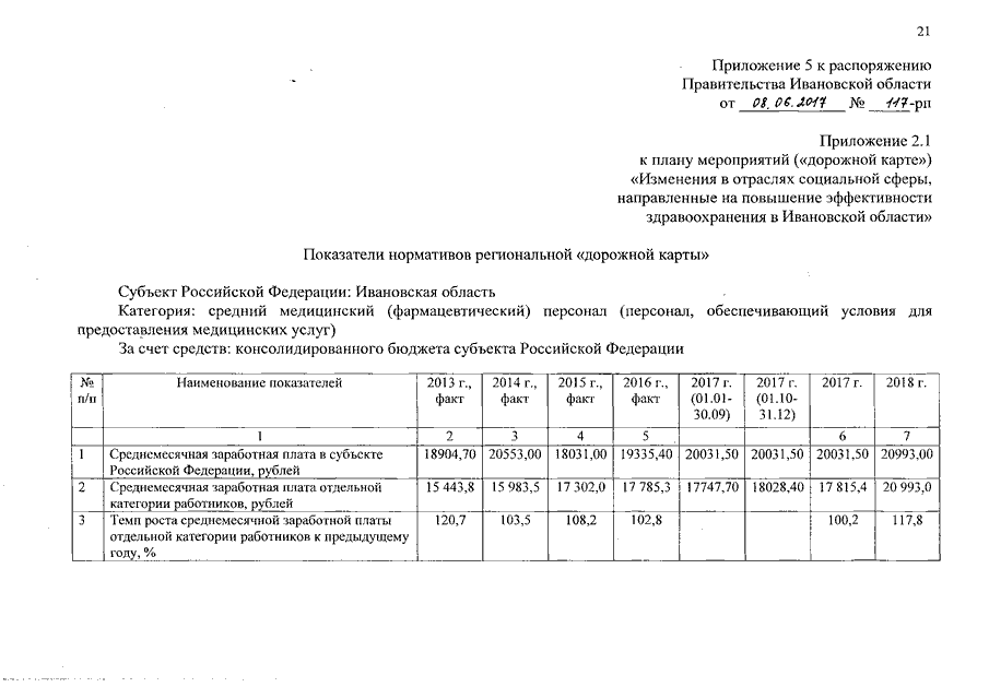 Распоряжение Правительства Ивановской области от 08.06.2017 N 117-рп "О внесении изменений в распоряжение Правительства Ивановской области от 04.03.2013 N 37-рп "Об утверждении плана мероприятий ("дорожной карты") "Изменения в отраслях социальной сферы, направленные на повышение эффективности здравоохранения в Ивановской области"