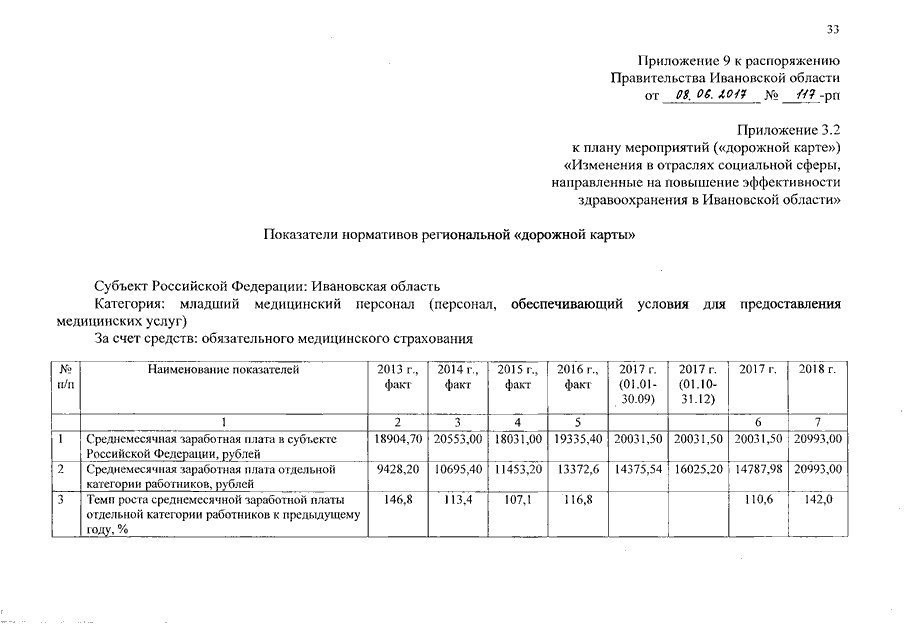 Распоряжение Правительства Ивановской области от 08.06.2017 N 117-рп "О внесении изменений в распоряжение Правительства Ивановской области от 04.03.2013 N 37-рп "Об утверждении плана мероприятий ("дорожной карты") "Изменения в отраслях социальной сферы, направленные на повышение эффективности здравоохранения в Ивановской области"