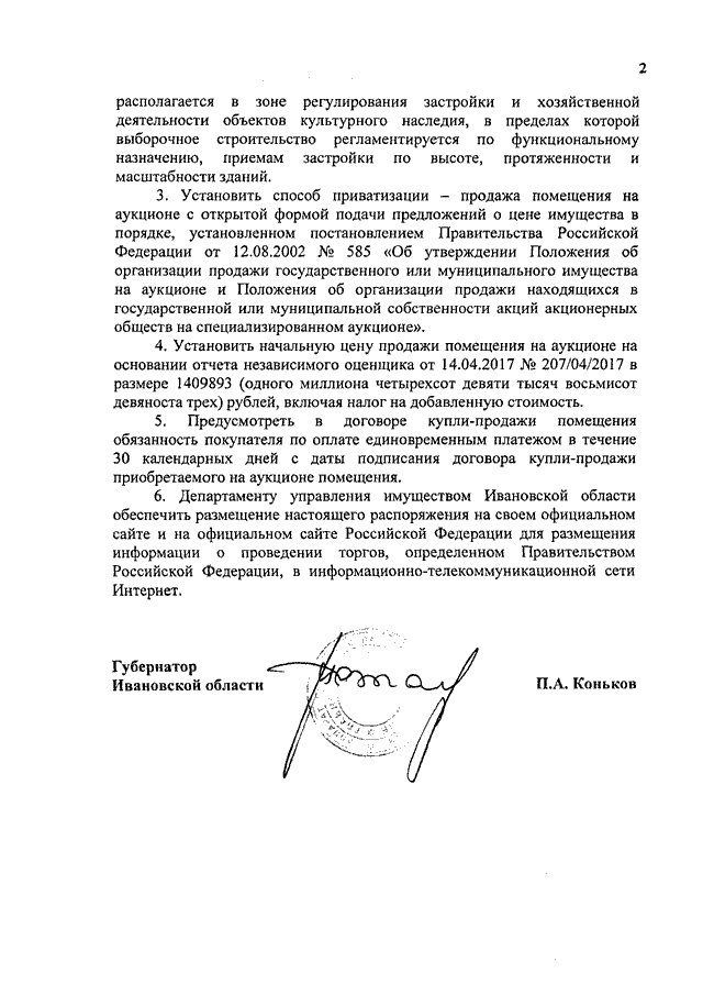 Распоряжение Правительства Ивановской области от 08.06.2017 N 96-рп "Об условиях приватизации помещения площадью 97,9 кв. м, расположенного по адресу: Ивановская область, г. Иваново, ул. Варенцовой, д. 12/3, находящегося в собственности Ивановской области"