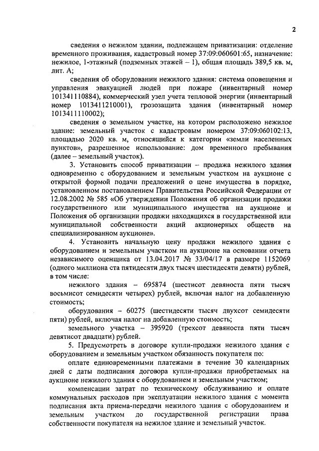 Распоряжение Правительства Ивановской области от 08.06.2017 N 98-рп "Об условиях приватизации нежилого здания с земельным участком по адресу: Ивановская область, Лежневский район, с. Новые Горки, ул. Большая Шуйская, д. 9а, находящихся в собственности Ивановской области"