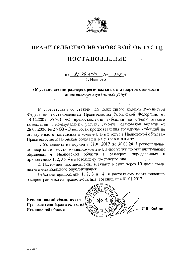 Постановление Правительства Ивановской области от 23.06.2017 N 249-п "Об установлении размеров региональных стандартов стоимости жилищно-коммунальных услуг"