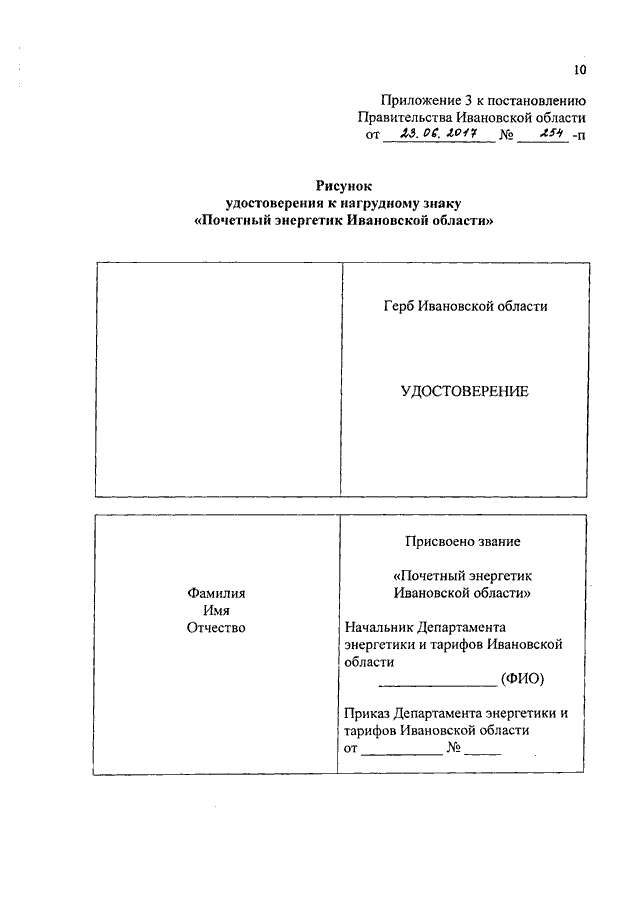 Постановление Правительства Ивановской области от 23.06.2017 N 254-п "Об учреждении звания "Почетный энергетик Ивановской области" (вместе с "Положением о звании "Почетный энергетик Ивановской области")