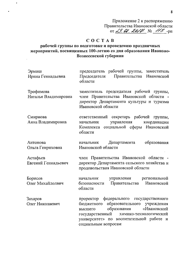Распоряжение Правительства Ивановской области от 23.06.2017 N 118-рп "О подготовке и проведении праздничных мероприятий, посвященных 100-летию со дня образования Иваново-Вознесенской губернии"