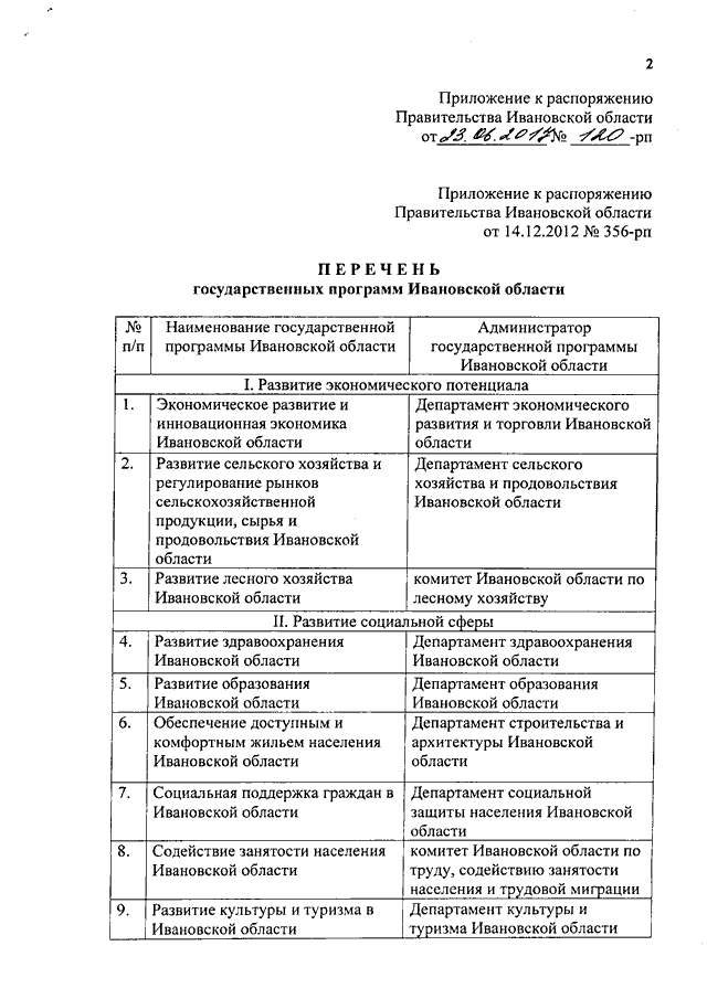 Распоряжение Правительства Ивановской области от 23.06.2017 N 120-рп "О внесении изменения в распоряжение Правительства Ивановской области от 14.12.2012 N 356-рп "Об утверждении перечня государственных программ Ивановской области"