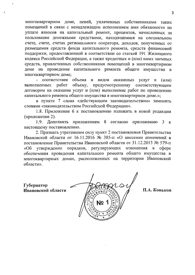 Постановление Правительства Ивановской области от 05.07.2017 N 265-п "О внесении изменений в постановление Правительства Ивановской области от 31.12.2013 N 579-п "Об утверждении порядков, регулирующих отношения в сфере обеспечения проведения капитального ремонта общего имущества в многоквартирных домах, расположенных на территории Ивановской области" (вместе с "Порядком проведения мониторинга технического состояния многоквартирных домов, расположенных на территории Ивановской области", "Порядком утверждения краткосрочных планов реализации региональной программы капитального ремонта общего имущества в многоквартирных домах", "Порядком внесения изменений в региональную программу капитального ремонта общего имущества в многоквартирных домах, расположенных на территории Ивановской области")