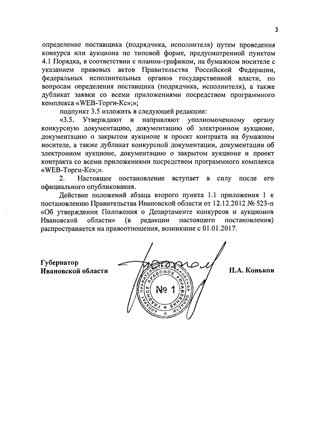 Постановление Правительства Ивановской области от 05.07.2017 N 271-п "О внесении изменений в постановление Правительства Ивановской области от 12.12.2012 N 523-п "Об утверждении Положения о Департаменте конкурсов и аукционов Ивановской области"