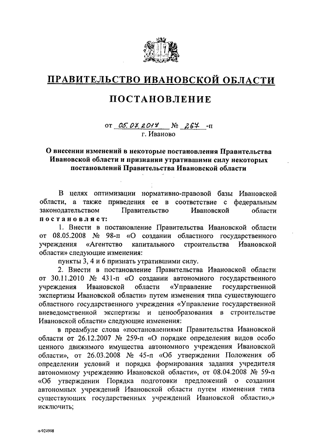 Постановление Правительства Ивановской области от 05.07.2017 N 267-п "О внесении изменений в некоторые постановления Правительства Ивановской области и признании утратившими силу некоторых постановлений Правительства Ивановской области"