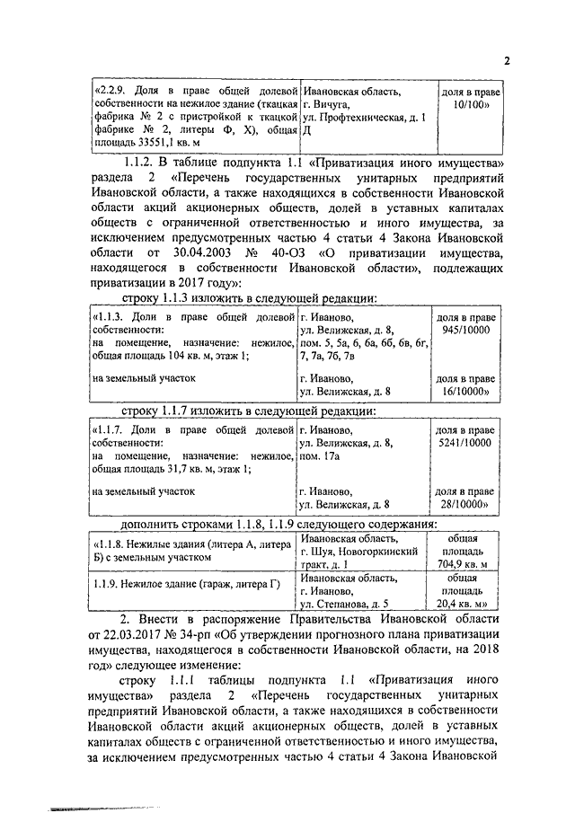 Распоряжение Правительства Ивановской области от 05.07.2017 N 132-рп "О внесении изменений в распоряжения Правительства Ивановской области от 29.02.2016 N 20-рп "Об утверждении прогнозного плана приватизации имущества, находящегося в собственности Ивановской области, на 2017 год" и от 22.03.2017 N 34-рп "Об утверждении прогнозного плана приватизации имущества, находящегося в собственности Ивановской области, на 2018 год"