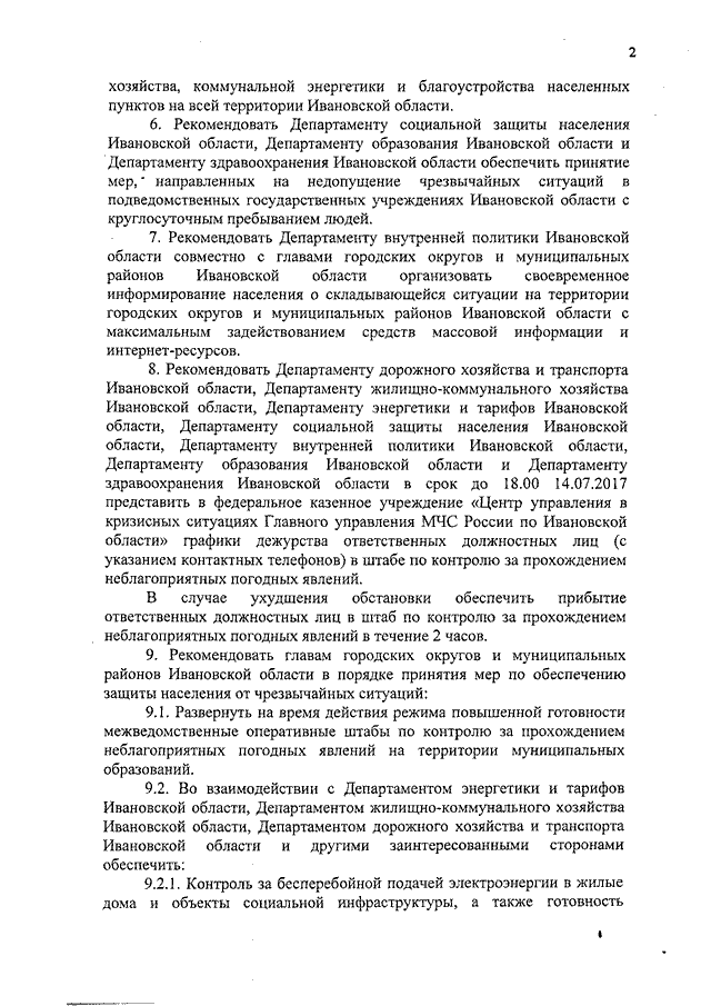 Распоряжение Правительства Ивановской области от 14.07.2017 N 136-рп "О введении режима повышенной готовности для органов управления и сил Ивановской областной подсистемы единой государственной системы предупреждения и ликвидации чрезвычайных ситуаций"