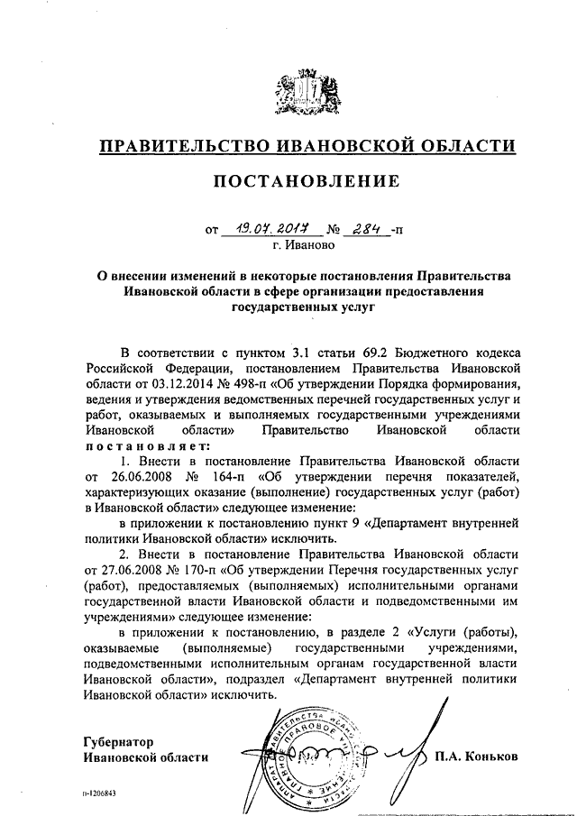 Постановление Правительства Ивановской области от 19.07.2017 N 284-п "О внесении изменений в некоторые постановления Правительства Ивановской области в сфере организации предоставления государственных услуг"
