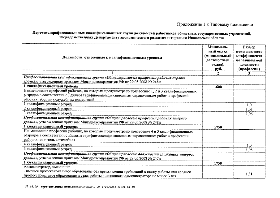 Постановление Правительства Ивановской области от 17.03.2009 N 61-п "О системе оплаты труда работников областных государственных учреждений, подведомственных Департаменту экономического развития и торговли Ивановской области" (вместе с "Типовым положением о системе оплаты труда работников областных государственных учреждений, подведомственных Департаменту экономического развития и торговли Ивановской области")