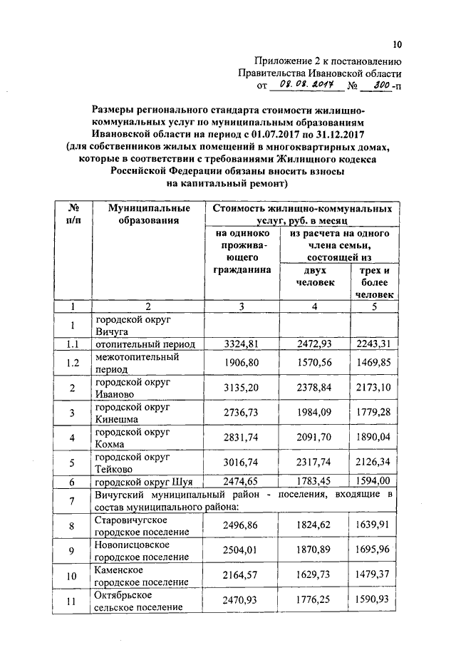 Постановление Правительства Ивановской области от 08.08.2017 N 300-п "Об установлении размеров региональных стандартов стоимости жилищно-коммунальных услуг"