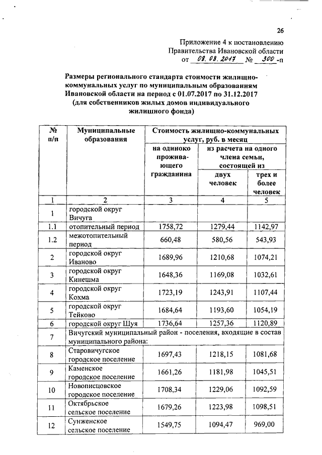 Постановление Правительства Ивановской области от 08.08.2017 N 300-п "Об установлении размеров региональных стандартов стоимости жилищно-коммунальных услуг"