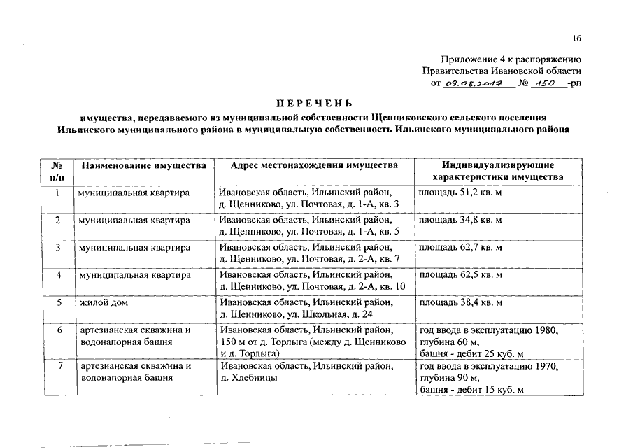Распоряжение Правительства Ивановской области от 08.08.2017 N 150-рп "О разграничении имущества, находящегося в муниципальной собственности, между Ильинским муниципальным районом и сельскими поселениями, входящими в его состав, в связи с изменением перечня вопросов местного значения сельского поселения"