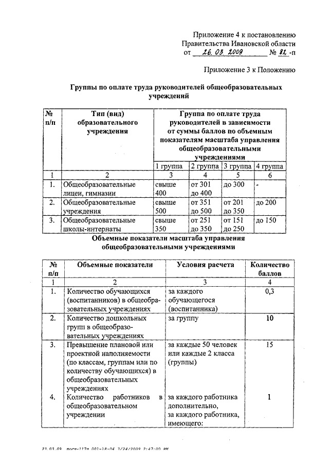 Постановление Правительства Ивановской области от 26.03.2009 N 82-п "О внесении изменений и дополнений в постановление Правительства Ивановской области от 19.05.2008 N 117-п и признании утратившими силу отдельных постановлений Правительства Ивановской области" (вместе с "Примерным регламентом государственно-общественного распределения стимулирующей части фонда оплаты труда работников общеобразовательного учреждения", "Примерным положением об органе самоуправления общеобразовательного учреждения")