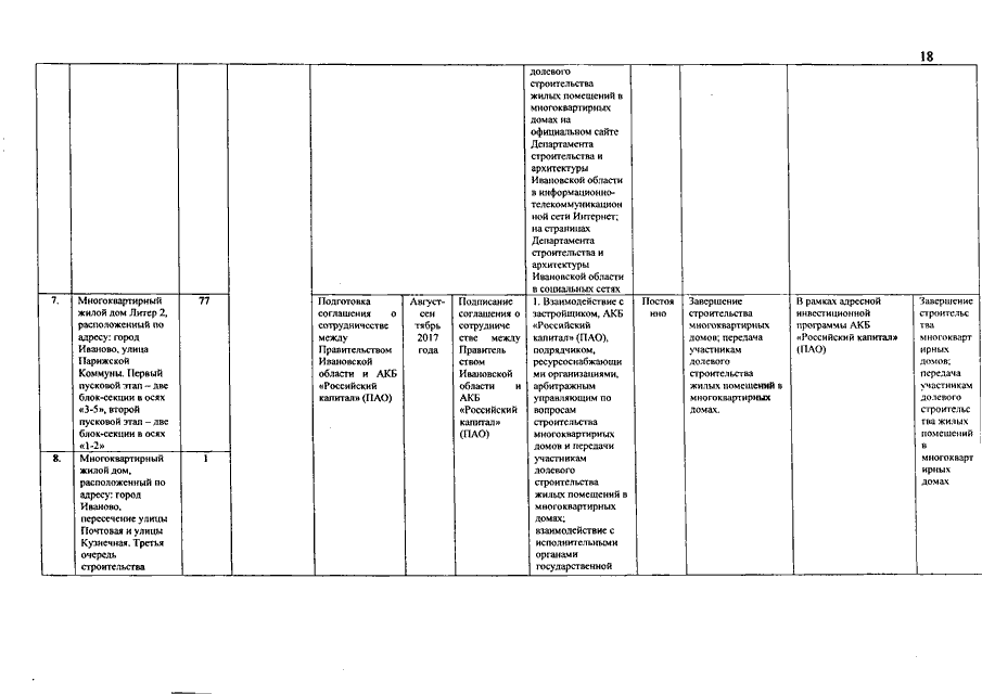 Распоряжение Правительства Ивановской области от 15.08.2017 N 153-рп "Об утверждении планов-графиков ("дорожных карт") по осуществлению мер по решению проблем граждан, включенных в реестр граждан, чьи денежные средства привлечены для строительства многоквартирных домов и чьи права нарушены" (вместе с "Планом-графиком ("дорожной картой") по осуществлению мер по решению проблем граждан, включенных в реестр граждан, чьи денежные средства привлечены для строительства многоквартирных домов, застройщиком которых является ООО "Инженерная коммуникационная компания", и чьи права нарушены", "Планом-графиком ("дорожной картой") по осуществлению мер по решению проблем граждан, включенных в реестр граждан, чьи денежные средства привлечены для строительства многоквартирного дома, застройщиком которого является ООО "Производственно-коммерческая фирма "Пума", и чьи права нарушены", "Планом-графиком ("дорожной картой") по осуществлению мер по решению проблем граждан, включенных в реестр граждан, чьи денежные средства привлечены для строительства многоквартирного дома, застройщиком которого является ООО "Ивстройинвест", и чьи права нарушены", "Планом-графиком ("дорожной картой") по осуществлению мер по решению проблем граждан, включенных в реестр граждан, чьи денежные средства привлечены для строительства многоквартирных домов, застройщиком которых является ОАО "ДСК", и чьи права нарушены")