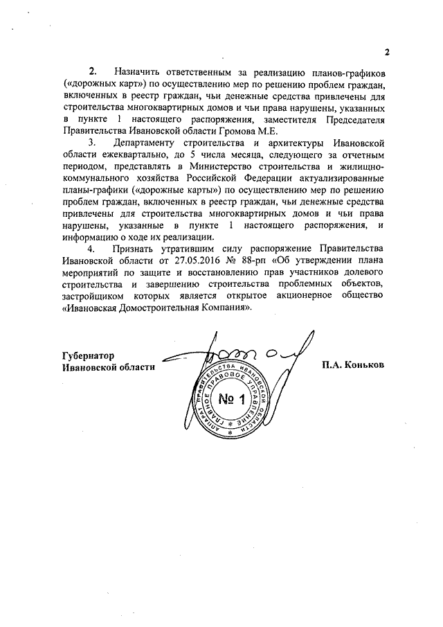 Распоряжение Правительства Ивановской области от 15.08.2017 N 153-рп "Об утверждении планов-графиков ("дорожных карт") по осуществлению мер по решению проблем граждан, включенных в реестр граждан, чьи денежные средства привлечены для строительства многоквартирных домов и чьи права нарушены" (вместе с "Планом-графиком ("дорожной картой") по осуществлению мер по решению проблем граждан, включенных в реестр граждан, чьи денежные средства привлечены для строительства многоквартирных домов, застройщиком которых является ООО "Инженерная коммуникационная компания", и чьи права нарушены", "Планом-графиком ("дорожной картой") по осуществлению мер по решению проблем граждан, включенных в реестр граждан, чьи денежные средства привлечены для строительства многоквартирного дома, застройщиком которого является ООО "Производственно-коммерческая фирма "Пума", и чьи права нарушены", "Планом-графиком ("дорожной картой") по осуществлению мер по решению проблем граждан, включенных в реестр граждан, чьи денежные средства привлечены для строительства многоквартирного дома, застройщиком которого является ООО "Ивстройинвест", и чьи права нарушены", "Планом-графиком ("дорожной картой") по осуществлению мер по решению проблем граждан, включенных в реестр граждан, чьи денежные средства привлечены для строительства многоквартирных домов, застройщиком которых является ОАО "ДСК", и чьи права нарушены")