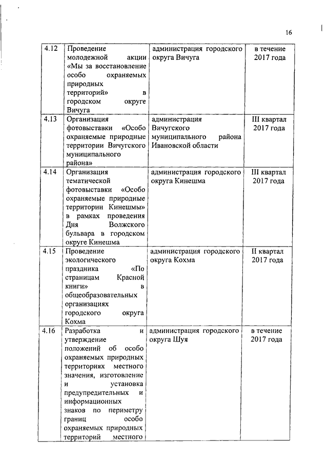 Распоряжение Правительства Ивановской области от 16.08.2017 N 154-рп "О внесении изменений в распоряжение Правительства Ивановской области от 06.12.2016 N 256-рп "Об утверждении плана основных мероприятий по проведению в 2017 году в Ивановской области Года экологии и Года особо охраняемых природных территорий"