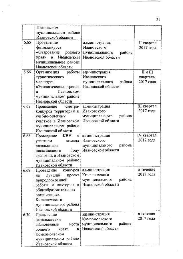 Распоряжение Правительства Ивановской области от 16.08.2017 N 154-рп "О внесении изменений в распоряжение Правительства Ивановской области от 06.12.2016 N 256-рп "Об утверждении плана основных мероприятий по проведению в 2017 году в Ивановской области Года экологии и Года особо охраняемых природных территорий"