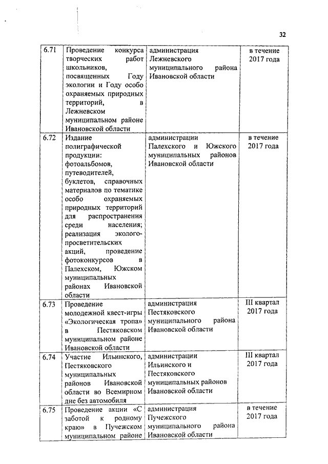 Распоряжение Правительства Ивановской области от 16.08.2017 N 154-рп "О внесении изменений в распоряжение Правительства Ивановской области от 06.12.2016 N 256-рп "Об утверждении плана основных мероприятий по проведению в 2017 году в Ивановской области Года экологии и Года особо охраняемых природных территорий"