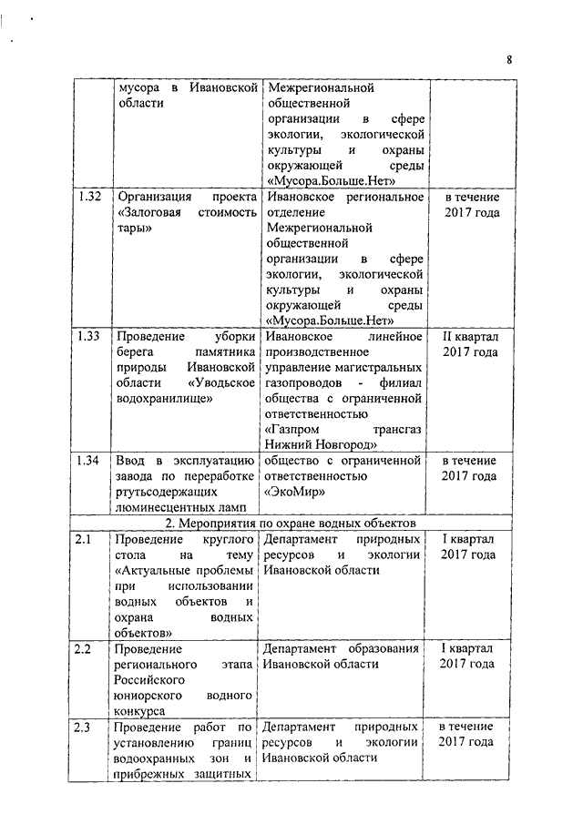 Распоряжение Правительства Ивановской области от 16.08.2017 N 154-рп "О внесении изменений в распоряжение Правительства Ивановской области от 06.12.2016 N 256-рп "Об утверждении плана основных мероприятий по проведению в 2017 году в Ивановской области Года экологии и Года особо охраняемых природных территорий"