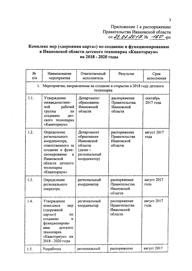 Распоряжение Правительства Ивановской области от 23.08.2017 N 160-рп "Об утверждении комплекса мер ("дорожной карты") по созданию и функционированию в Ивановской области детского технопарка "Кванториум" на 2018 - 2020 годы" (вместе с "Концепцией по созданию и функционированию в Ивановской области детского технопарка "Кванториум" на 2018 - 2020 годы")