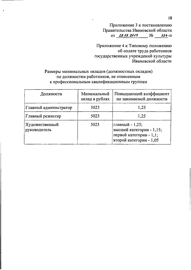 Постановление Правительства Ивановской области от 29.08.2017 N 334-п "О внесении изменений в постановление Правительства Ивановской области от 31.12.2008 N 367-п "О системе оплаты труда работников государственных учреждений Ивановской области, подведомственных Департаменту культуры и туризма Ивановской области"
