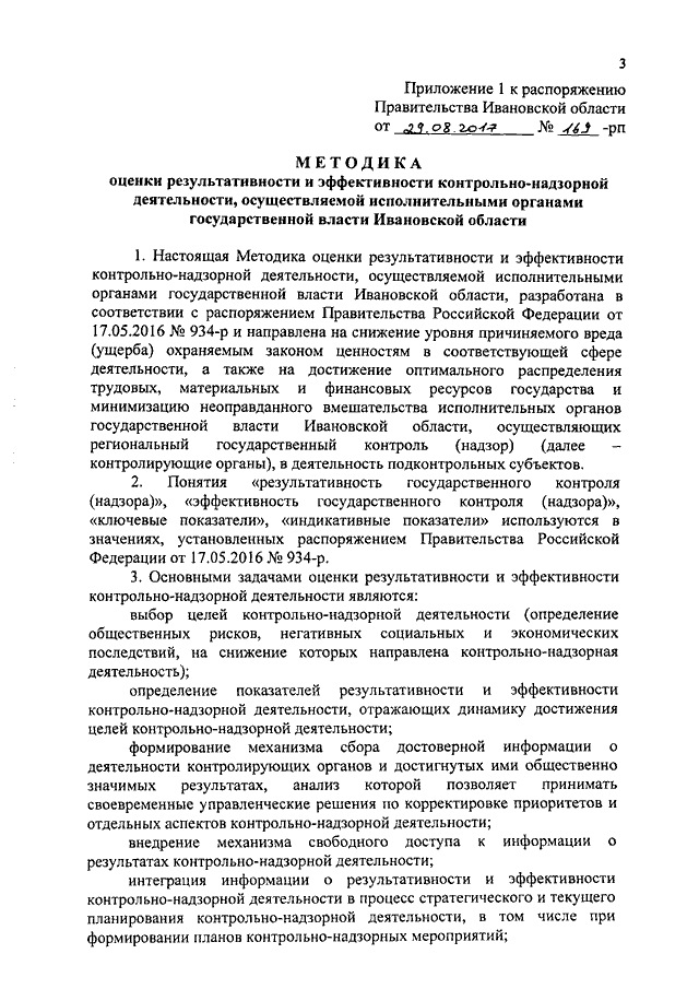 Распоряжение Правительства Ивановской области от 29.08.2017 N 169-рп "Об утверждении Методики оценки результативности и эффективности контрольно-надзорной деятельности, осуществляемой исполнительными органами государственной власти Ивановской области"