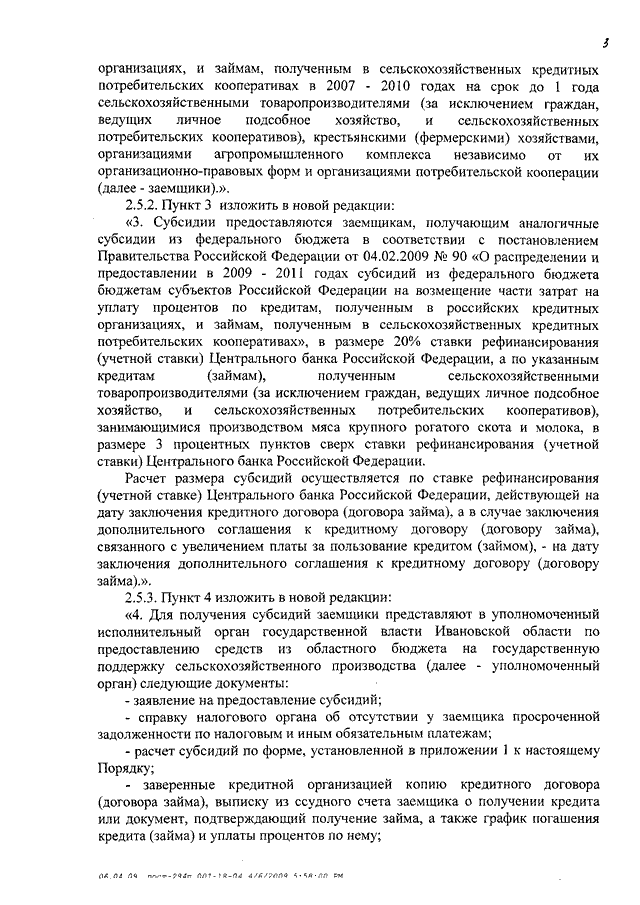 Постановление Правительства Ивановской области от 21.04.2009 N 126-п "О внесении изменений в постановления Правительства Ивановской области от 03.11.2006 N 179-п, от 13.02.2008 N 25-п, от 12.11.2008 N 294-п" (вместе с "Порядком предоставления за счет средств областного бюджета субсидий на возмещение части затрат на уплату процентов по кредитам, полученным в российских кредитных организациях в 2008 - 2011 годах на срок до 5 лет лизинговыми компаниями на пополнение оборотных средств в целях приобретения предметов лизинга для сельскохозяйственных товаропроизводителей области")