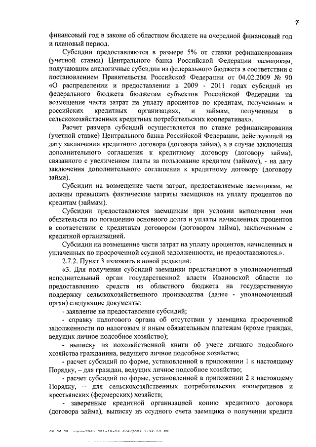 Постановление Правительства Ивановской области от 21.04.2009 N 126-п "О внесении изменений в постановления Правительства Ивановской области от 03.11.2006 N 179-п, от 13.02.2008 N 25-п, от 12.11.2008 N 294-п" (вместе с "Порядком предоставления за счет средств областного бюджета субсидий на возмещение части затрат на уплату процентов по кредитам, полученным в российских кредитных организациях в 2008 - 2011 годах на срок до 5 лет лизинговыми компаниями на пополнение оборотных средств в целях приобретения предметов лизинга для сельскохозяйственных товаропроизводителей области")